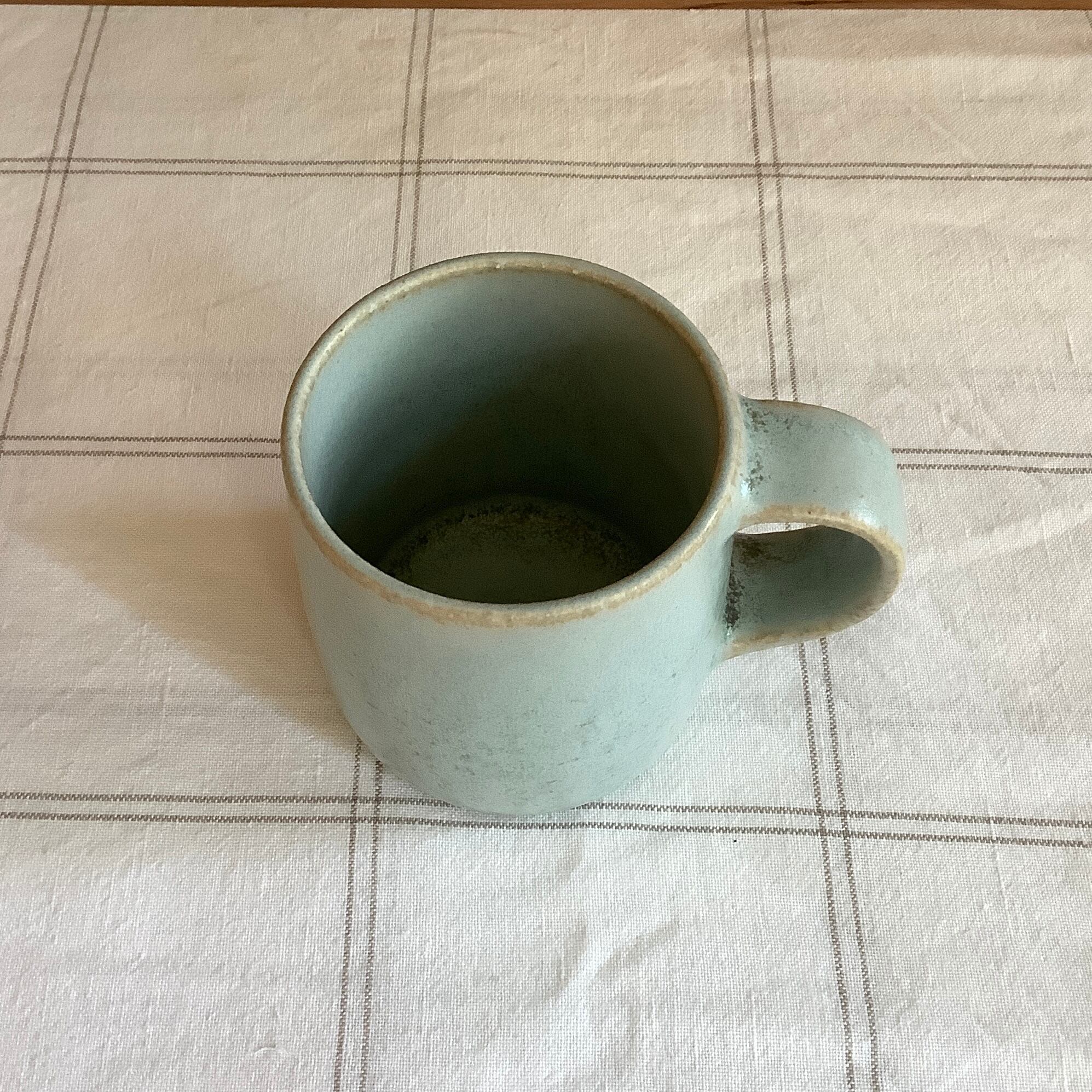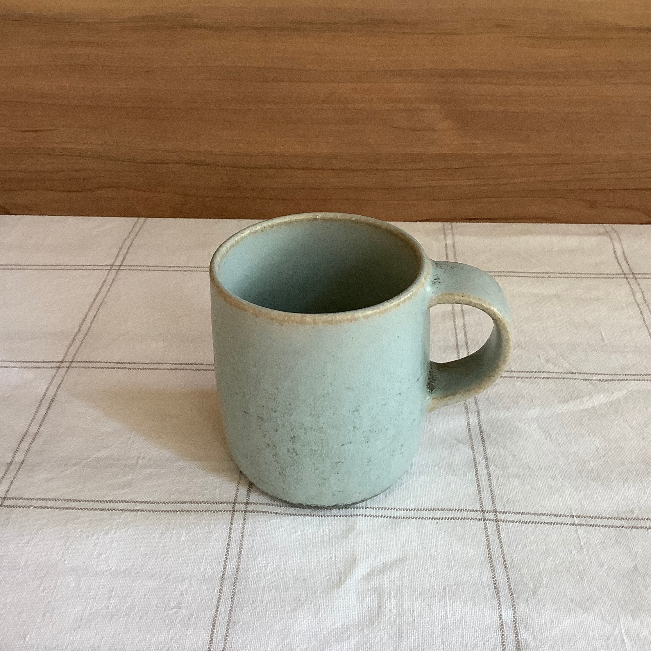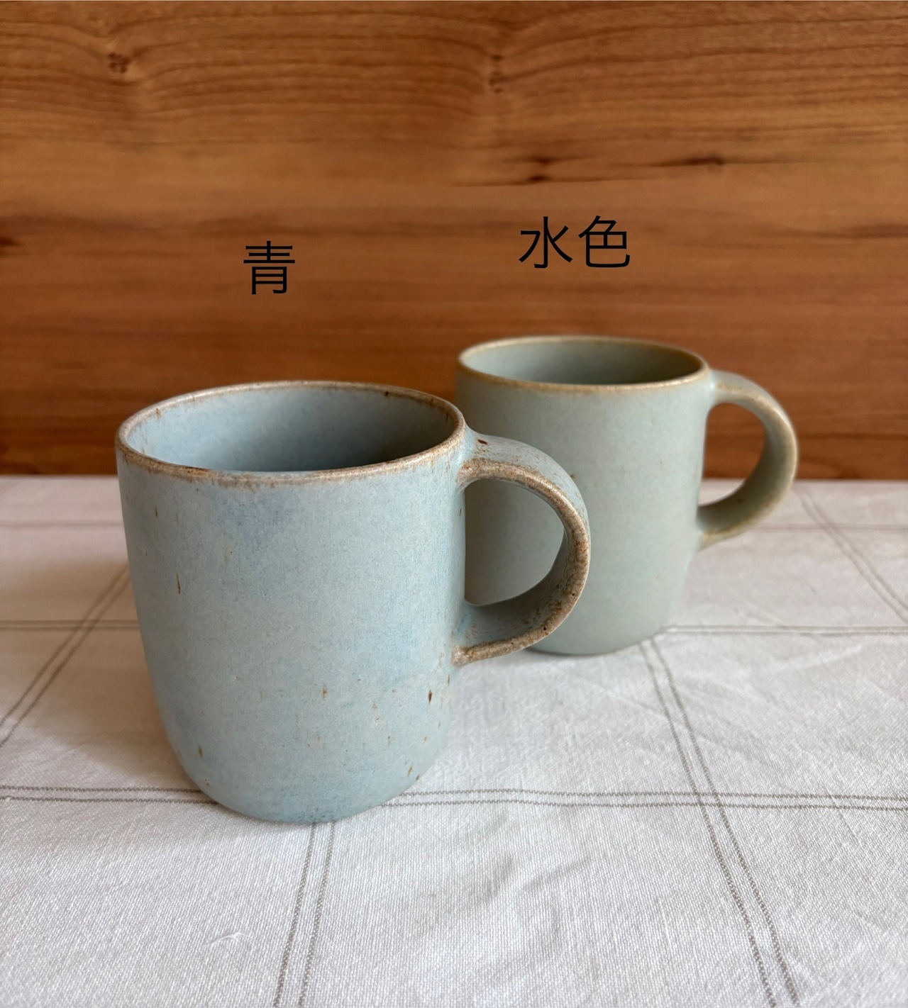温かみのあるマットな風合い、コーヒーの琥珀色が映える水色が魅力的なお品です。持ち手に指2本が入れられてしっかり支えられる安定感もあります。