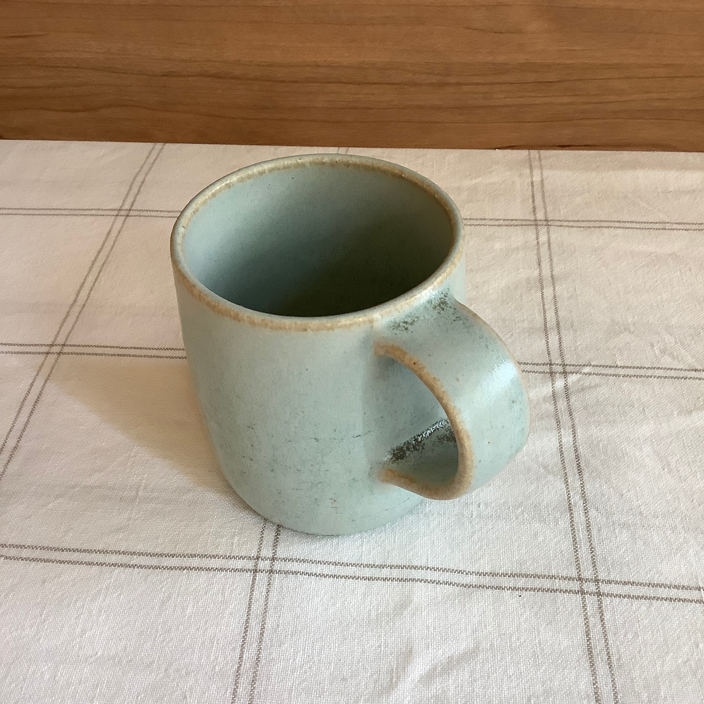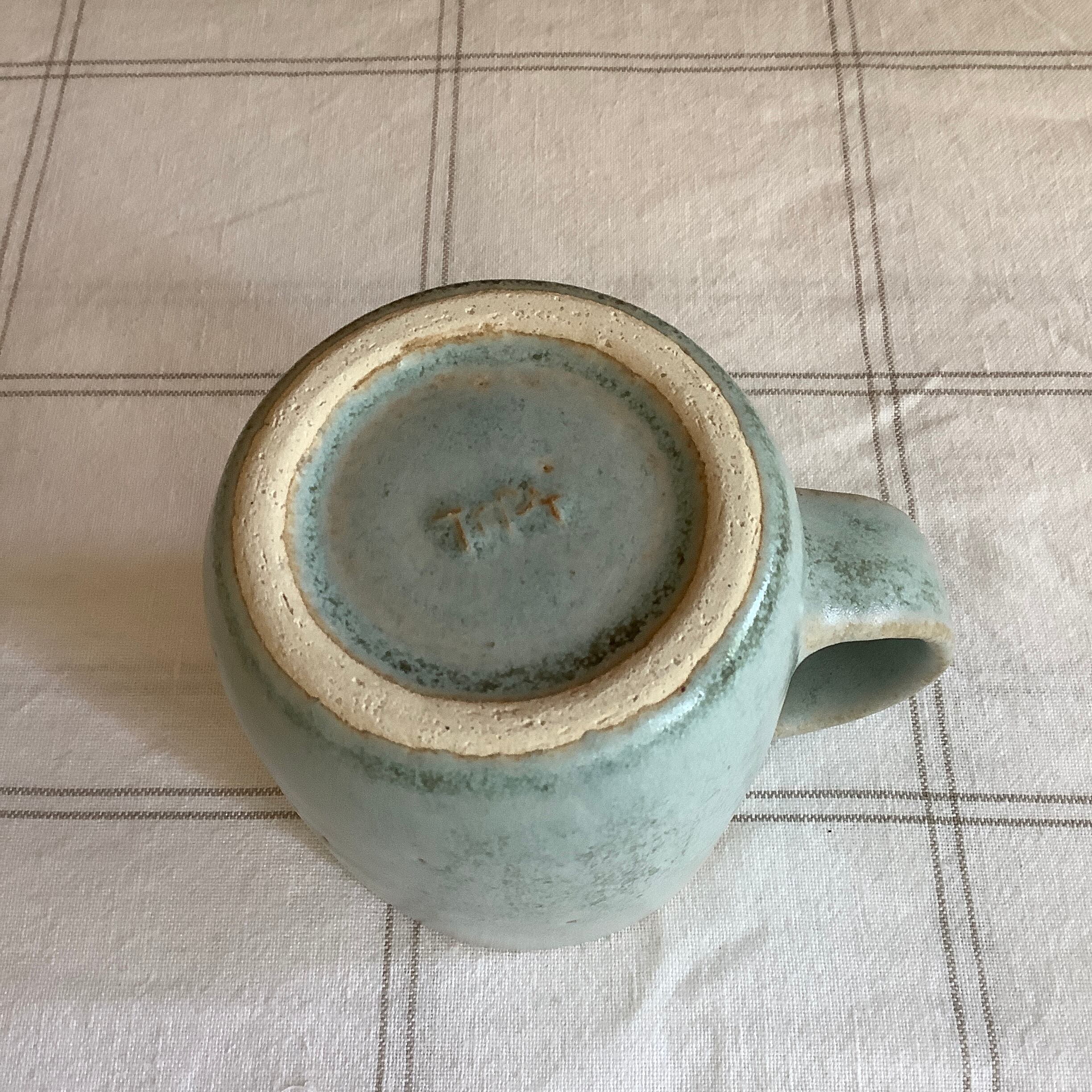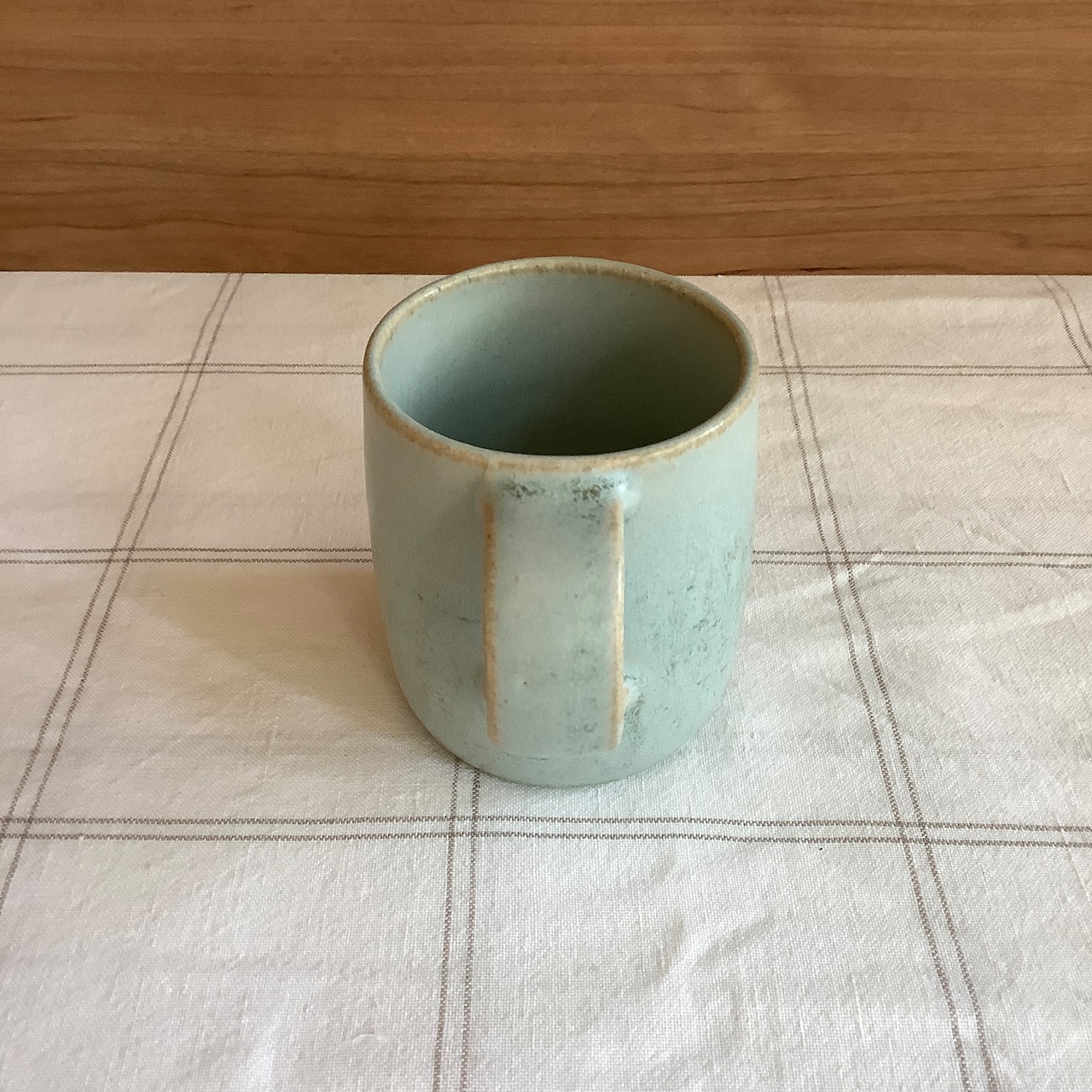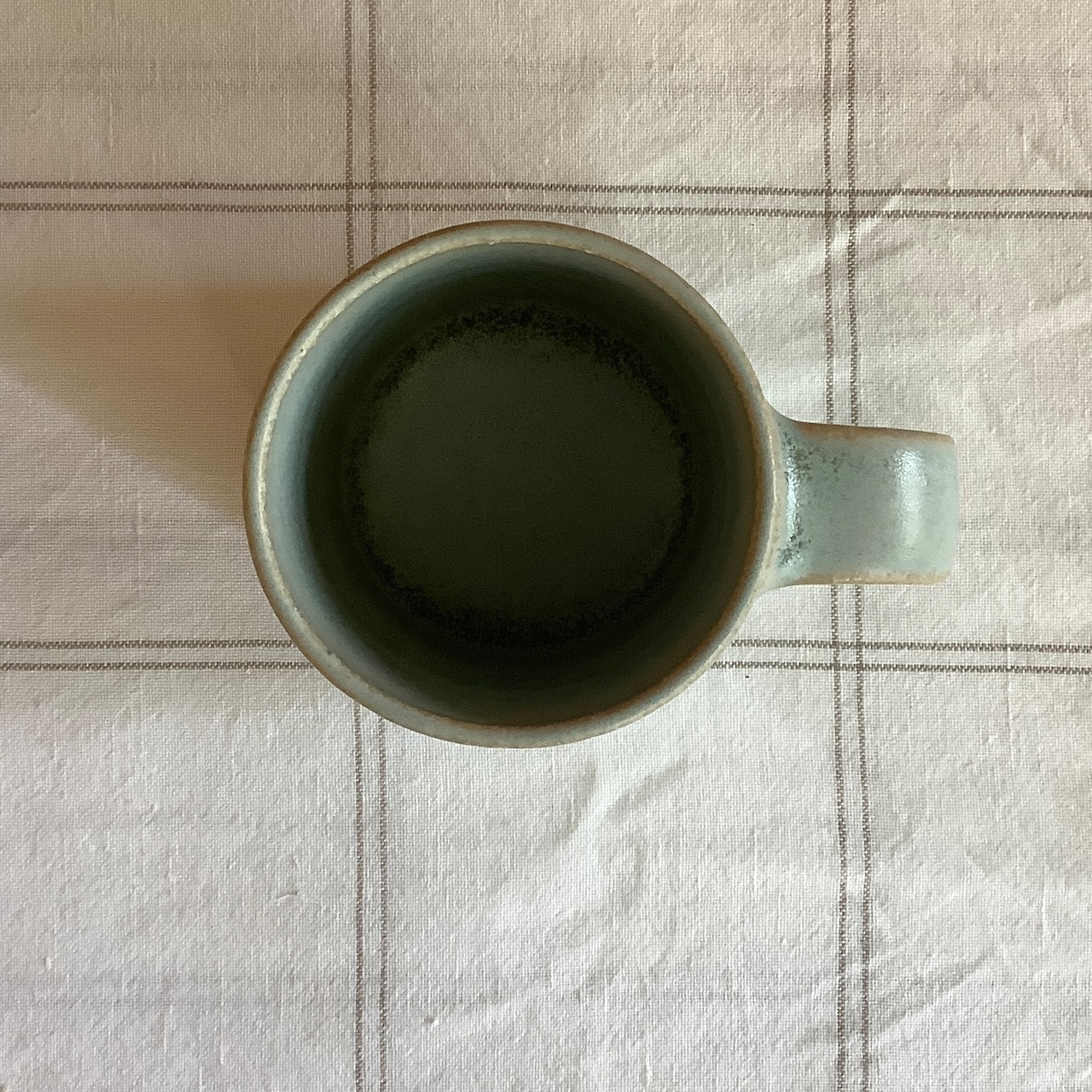温かみのあるマットな風合い、コーヒーの琥珀色が映える水色が魅力的なお品です。持ち手に指2本が入れられてしっかり支えられる安定感もあります。