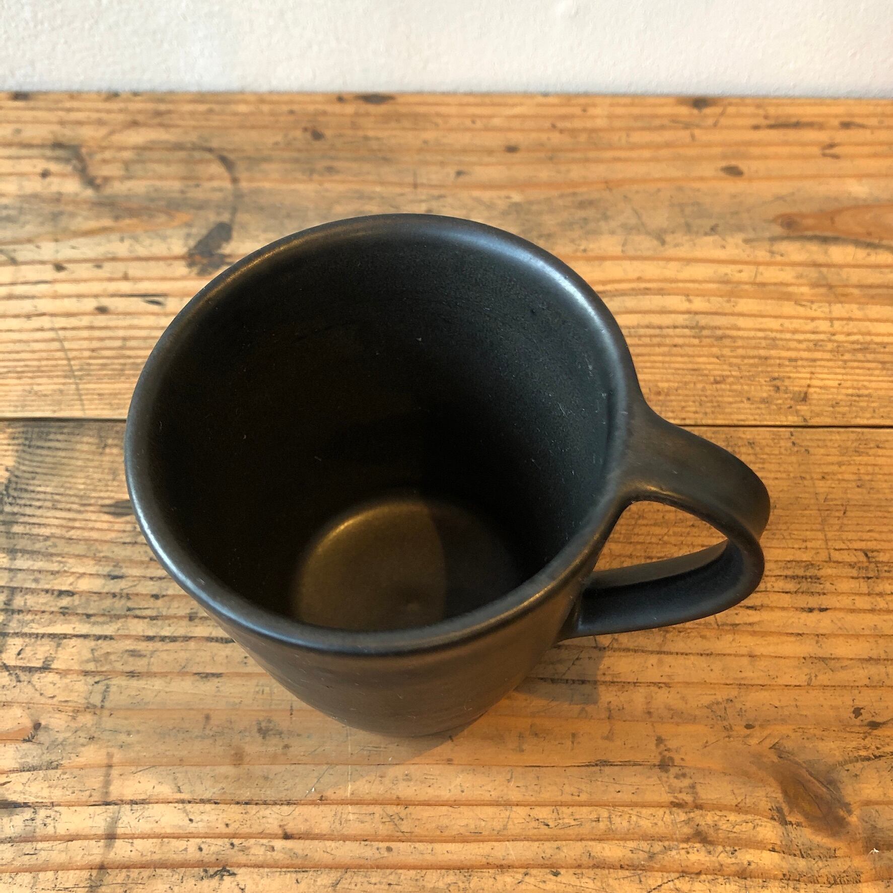 毎日のマグとしてとてもシンプルで使いやすいお品です。マットで茶色がかった黒色は、シャープになりすぎず、色違いでお選びいただくと、それぞれが引き立てあってシンプルながら優しい雰囲気の食卓となります。