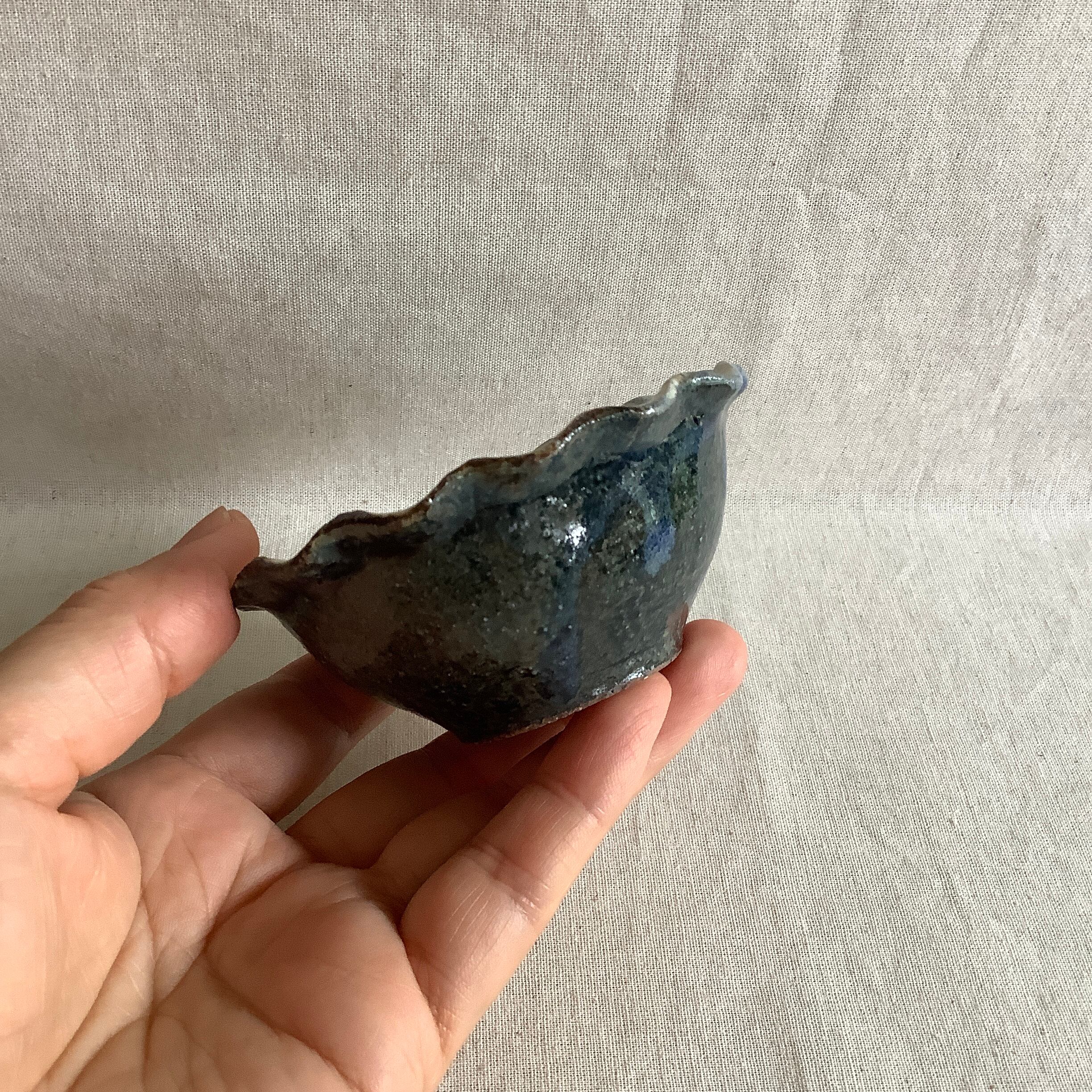 八木橋昇さんの輪花小付け 黒呉須化粧