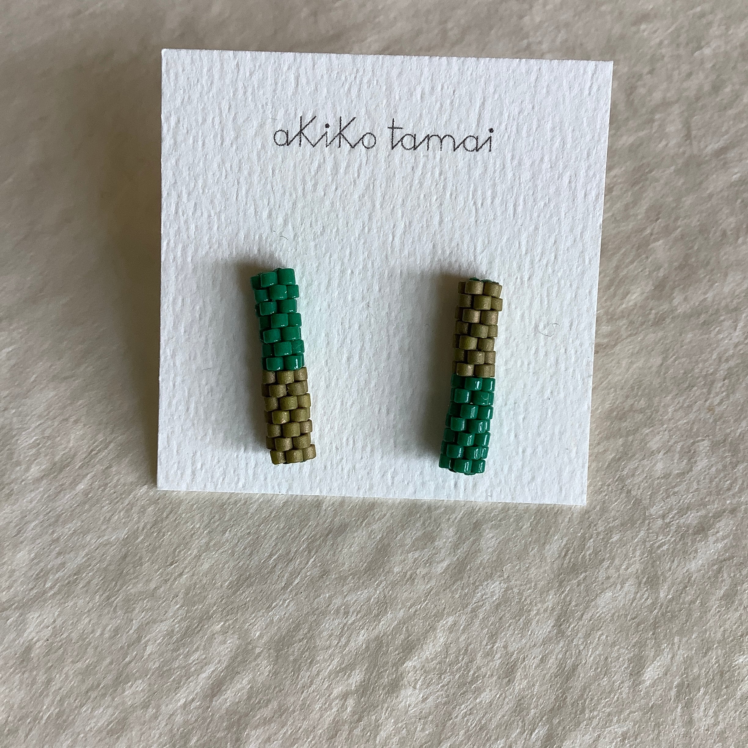 小さなマットなビーズを、チューブ状に繋げた細やかな手仕事のお品です。ポップな色合いでお顔まわりがぱっと華やかに、気持ちも元気になるお品です。左右で配色を逆にしてあり、遊び心を感じます。