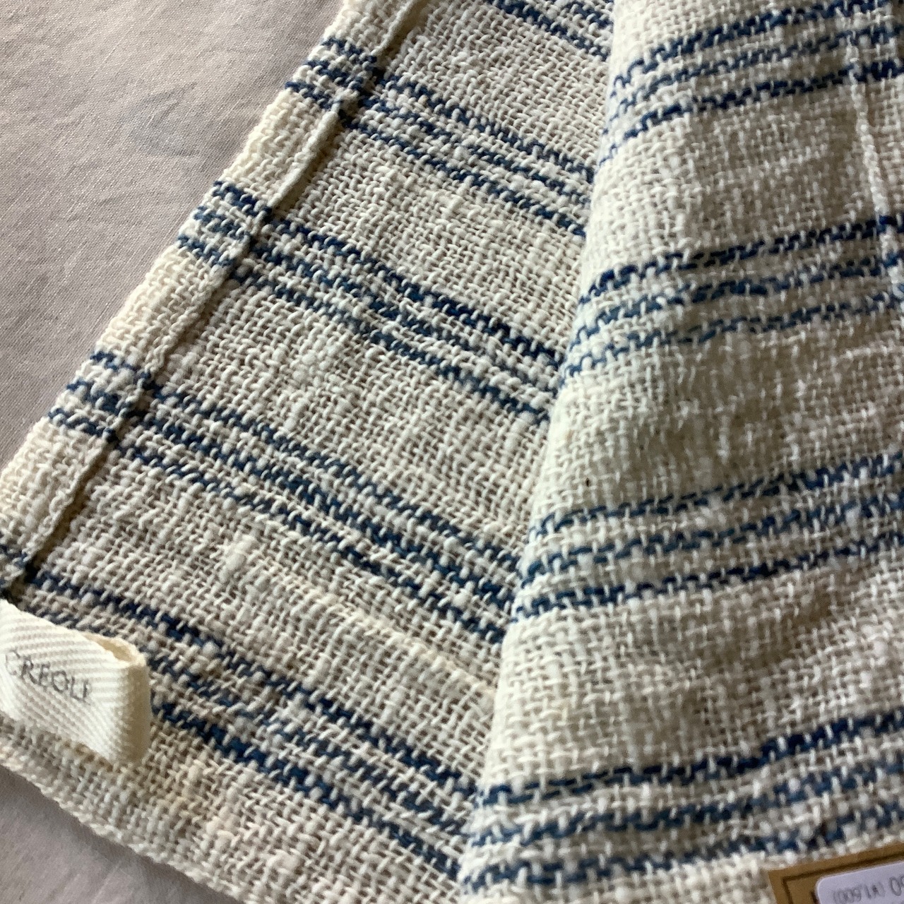 CREOLEのスタッフさんがラオスの作り手と直接やりとりしながら、手紡ぎ手織りで作ったクロスです。ざっくりとした風合いが魅力で、ナチュラルな雰囲気を空間にプラスしてくれます。